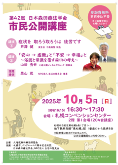 - 第42回日本森田療法学会は盛会のうちに終了いたしました。多数のご参加、誠にありがとうございました。また、ご協力いただきました関係者の皆様には心より御礼申し上げます。